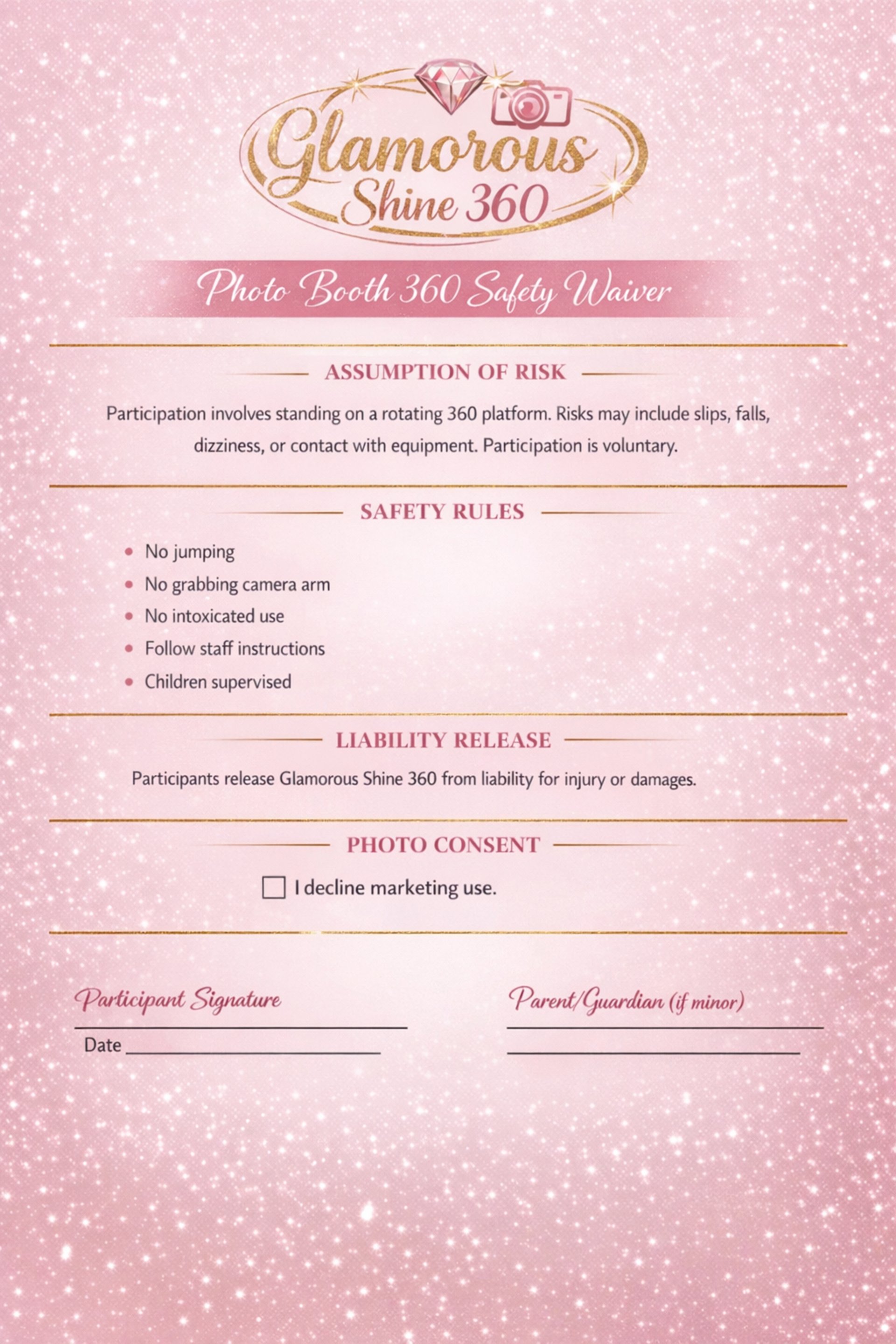 Click Link Below to Complete Waiver to start enjoying Glamorous Shine 360 experience.